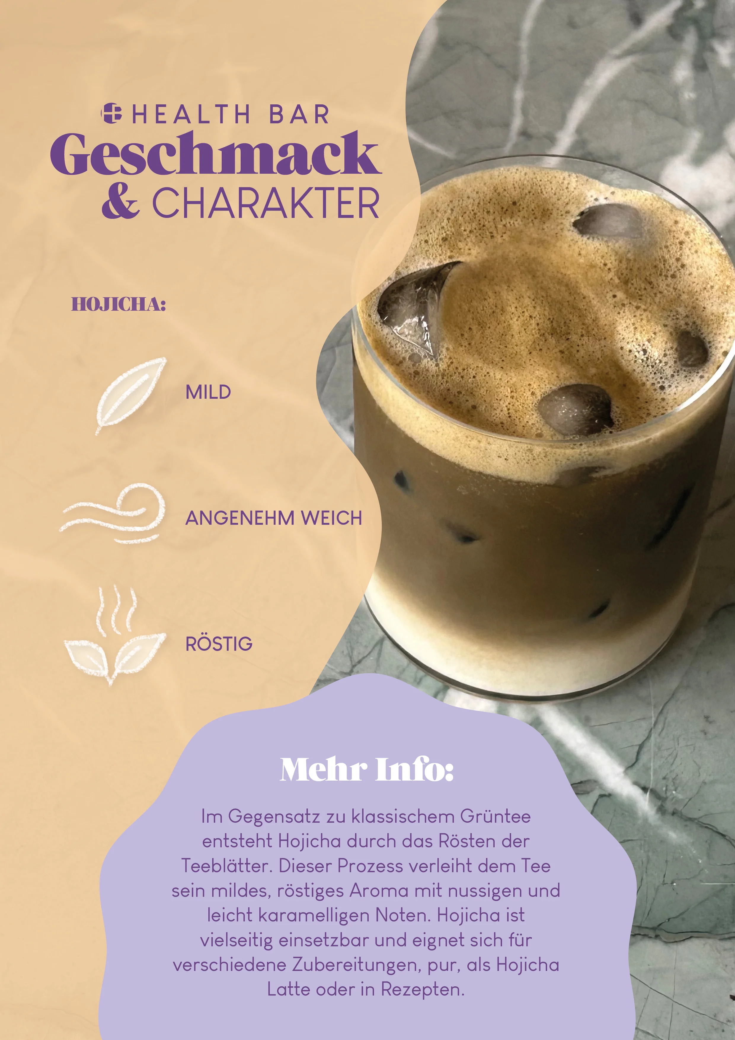 Das Hojicha-Pulver überzeugt mit einem angenehm rauchigen Aroma und einem einzigartig nussig-karamelligen Geschmack. Im Gegensatz zu Matcha enthält Hojicha durch das Rösten weniger Koffein, sodass es zu jeder Tageszeit genossen werden kann – ob morgens, nachmittags oder abends.
